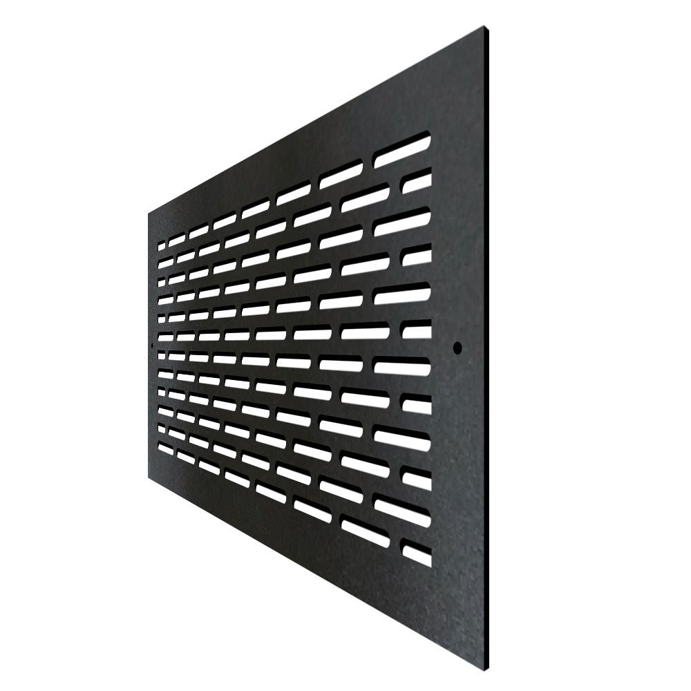 Our metal register covers help transform a rooms appearance with minimal effort. They are designed to sit on top of the floor and can be held down by screws. The registers are black powder coated, this finish gives a protective coating that will resist staining or corrosion. With a 1/16” thickness and a well-defined cut, these registers will not only last a lifetime but will also enhance the look of any room.